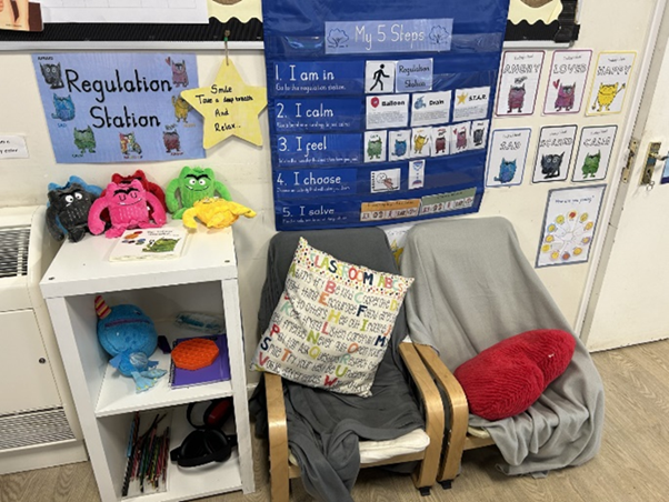 Each classroom at Grange Primary Academy will have a prominent Regulation Station for each child to use appropriately when they feel the need to do so.