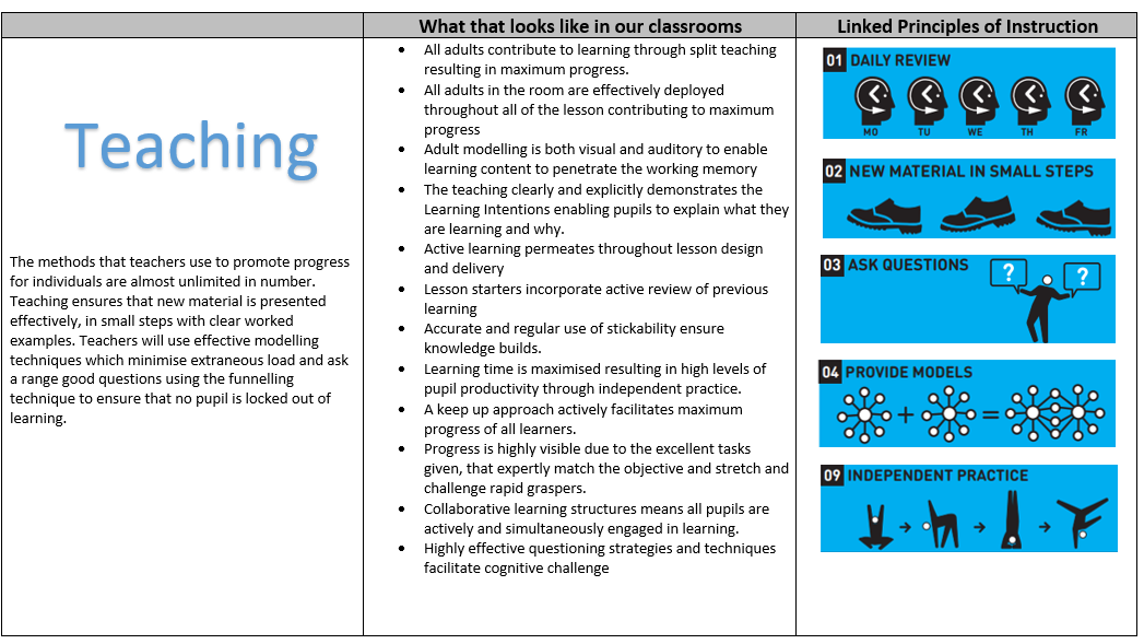 At Grange Primary Academy, in line with United Learning philosophy we follow the Roseshine Principles of Instructions to ensure effecive teaching and learning in all lessons.